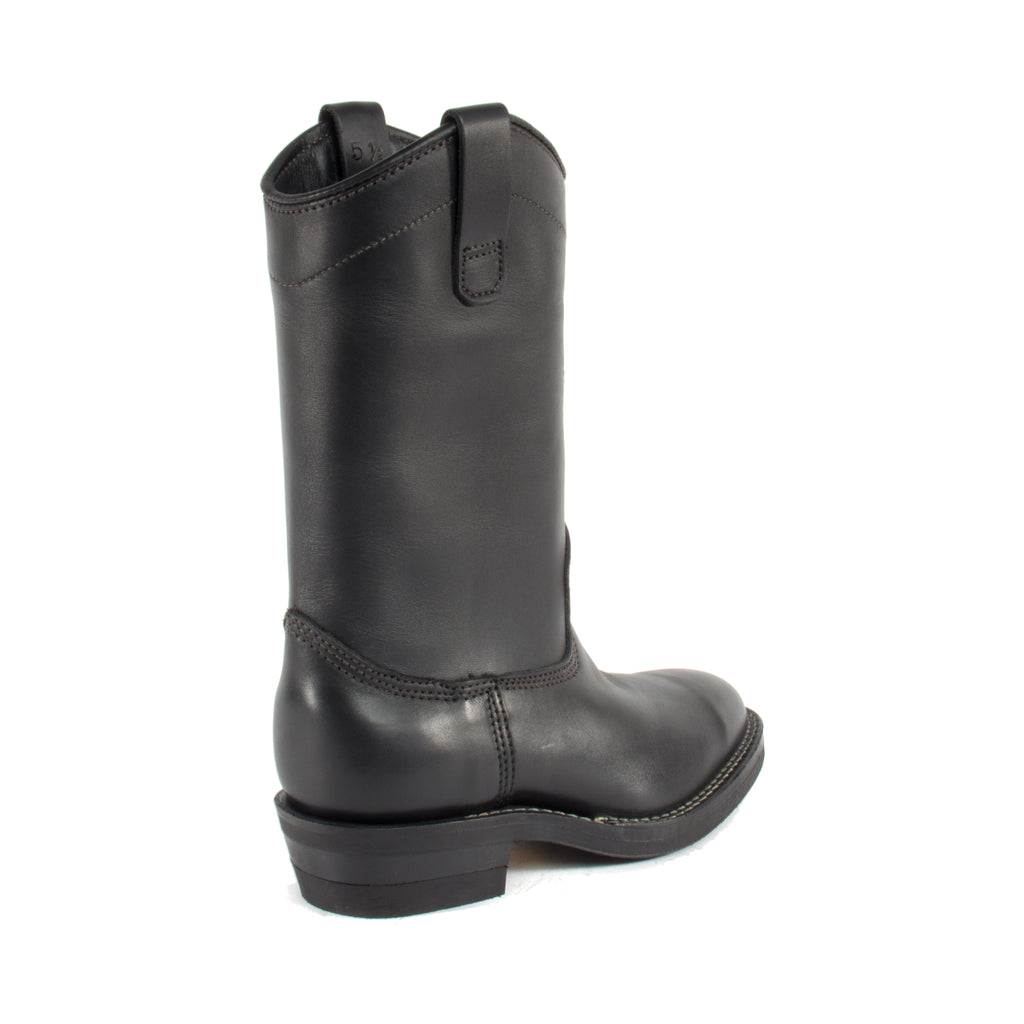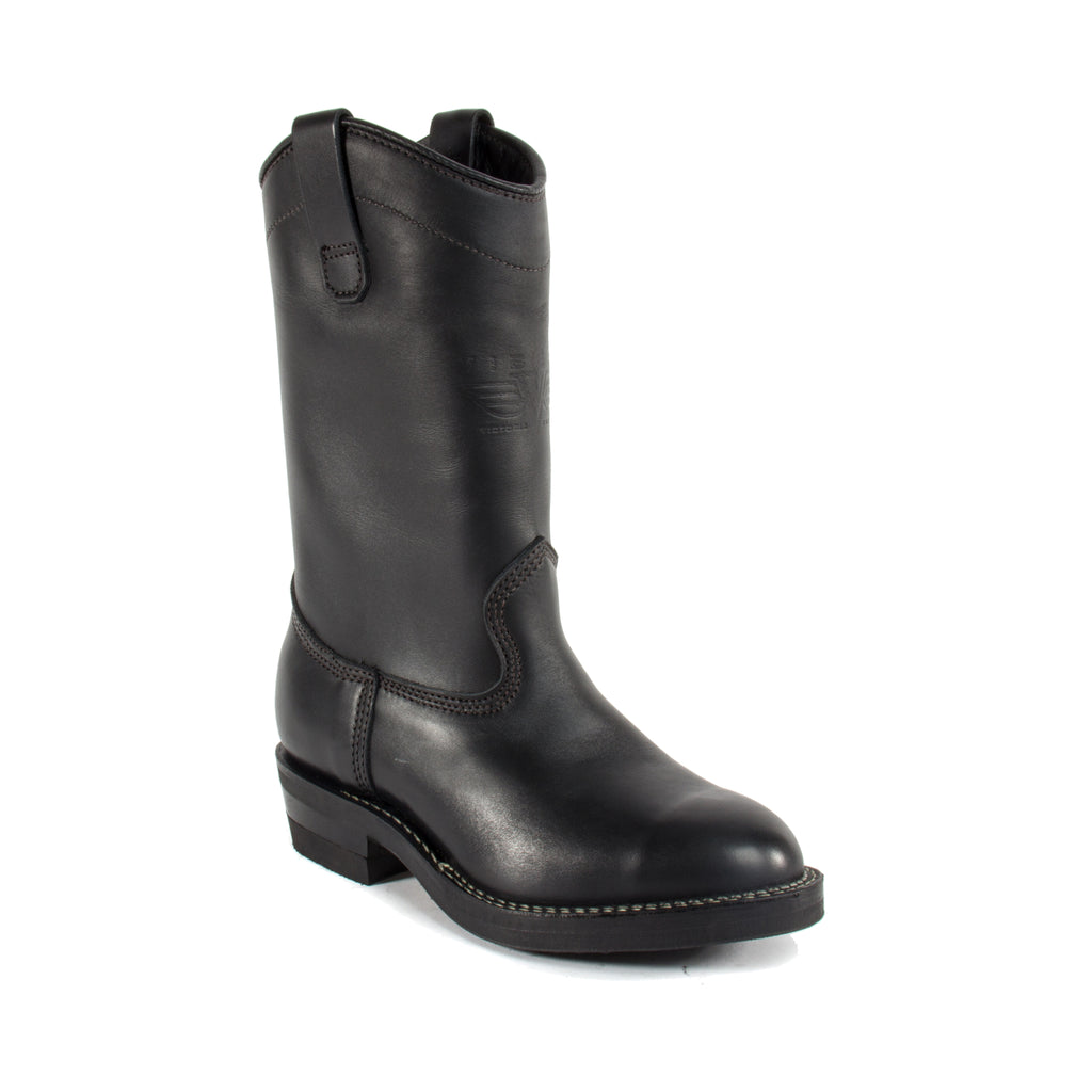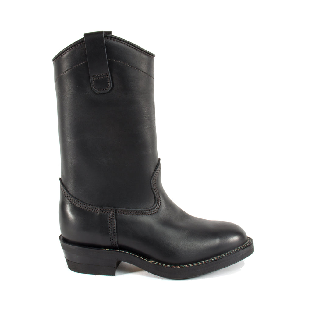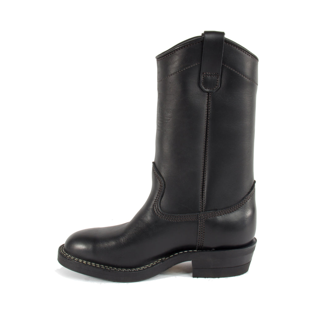 Featuring:- 11" Tall pull-on starts with black 7 oz full grain cowhide engineer leather, making it easier to hold & maintain a shine.