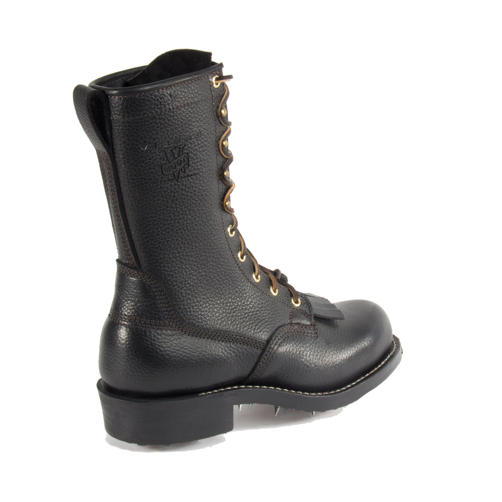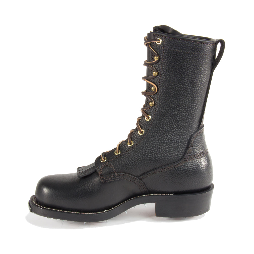 10" Black Buffalo Upper, Leather Screw Caulk Sole, Toe Plate & Hobs