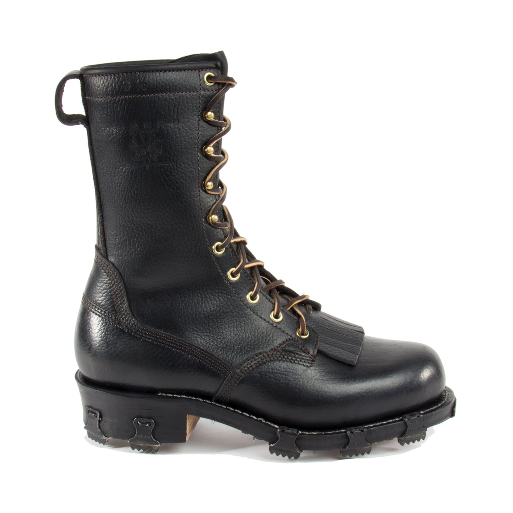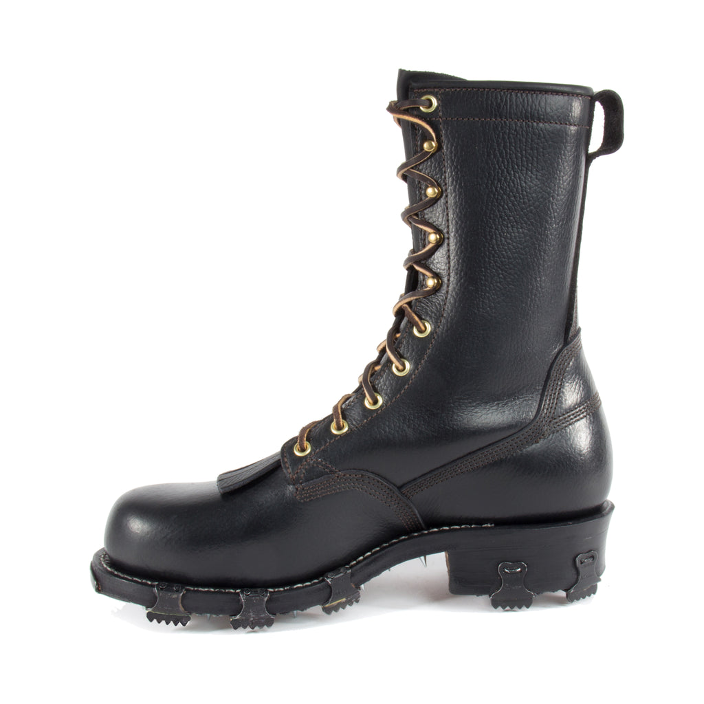 10" Black Buffalo Upper, Leather Screw Caulk Sole, Toe Plate & Hobs,